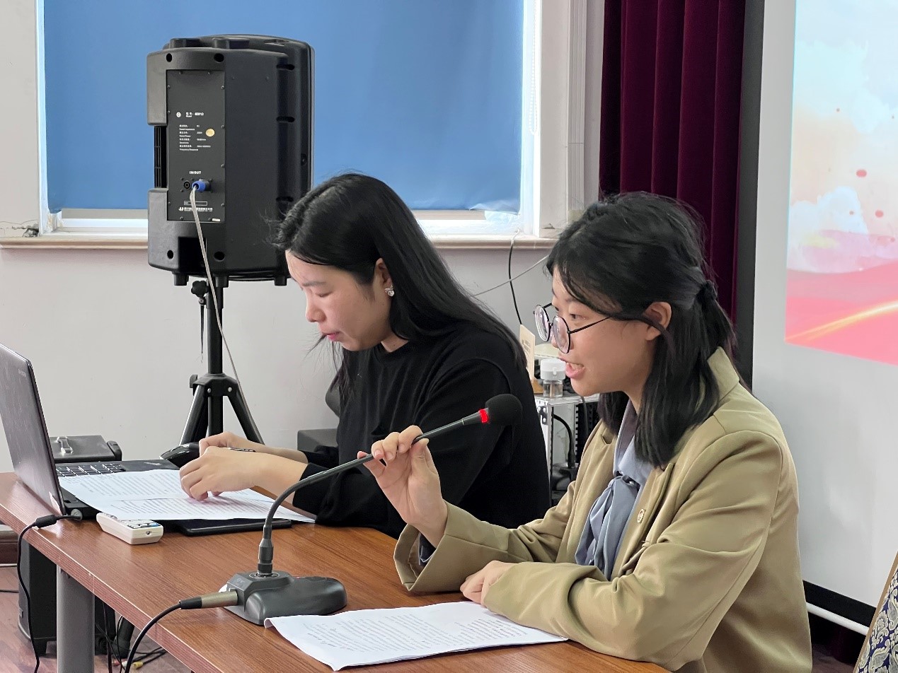 活动开始,么萌萌老师介绍了学院和社区党建共建的发展历程与活动开展情况。随后,张悦同学展开了以“学思悟践二十大,薪火相传正精神”为主题的宣讲。张悦同学先带领在场的党员同志们重温了党的二十大主题和报告中的十五项主要内容,并就其中实施科教兴国战略,强化现代化建设人才支撑以及推进文化自信自强,铸就社会主义文化新辉煌两项内容展开讲述。张悦同学从高校立德树人根本任务讲起,介绍了学校发展历程和“立信”校训精神传承,并援引习近平总书记人大考察,结合在校学习生活和自身志愿服务经历,讲述了当代立信学子的使命与担当。