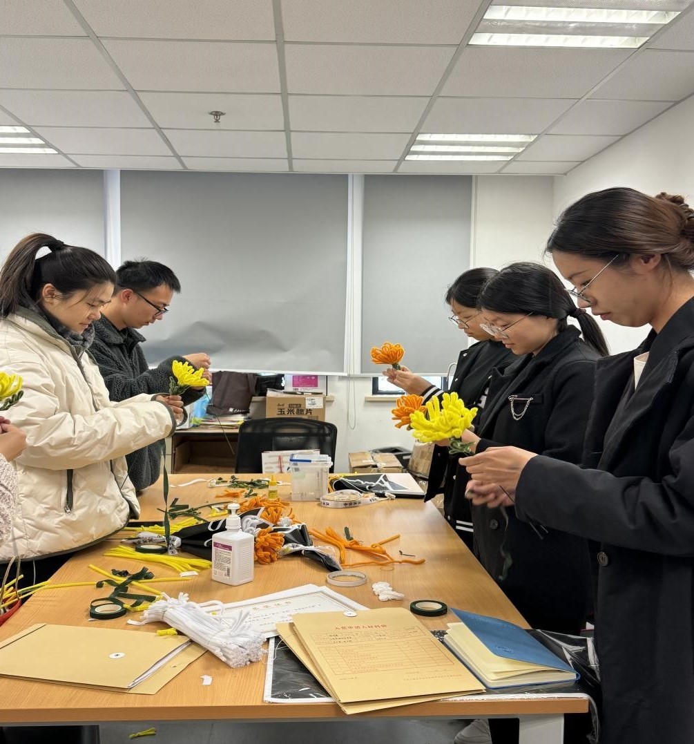 3月27日上午,学院学生第二党支部党员及部分入党积极分子们齐聚学院活动室,在支部成员陈昕羽桐的带领下认真细致地用手工材料自制仿真菊花,支部成员希望能用自己亲手制作的菊花向潘序伦老校长表达对老校长的缅怀和崇敬之情。