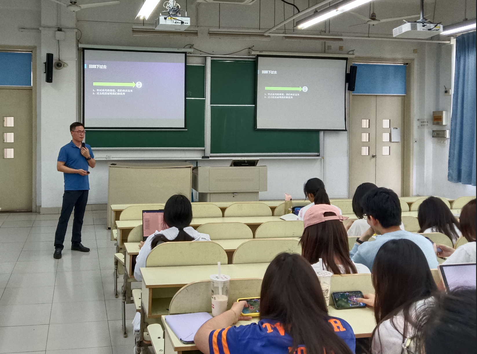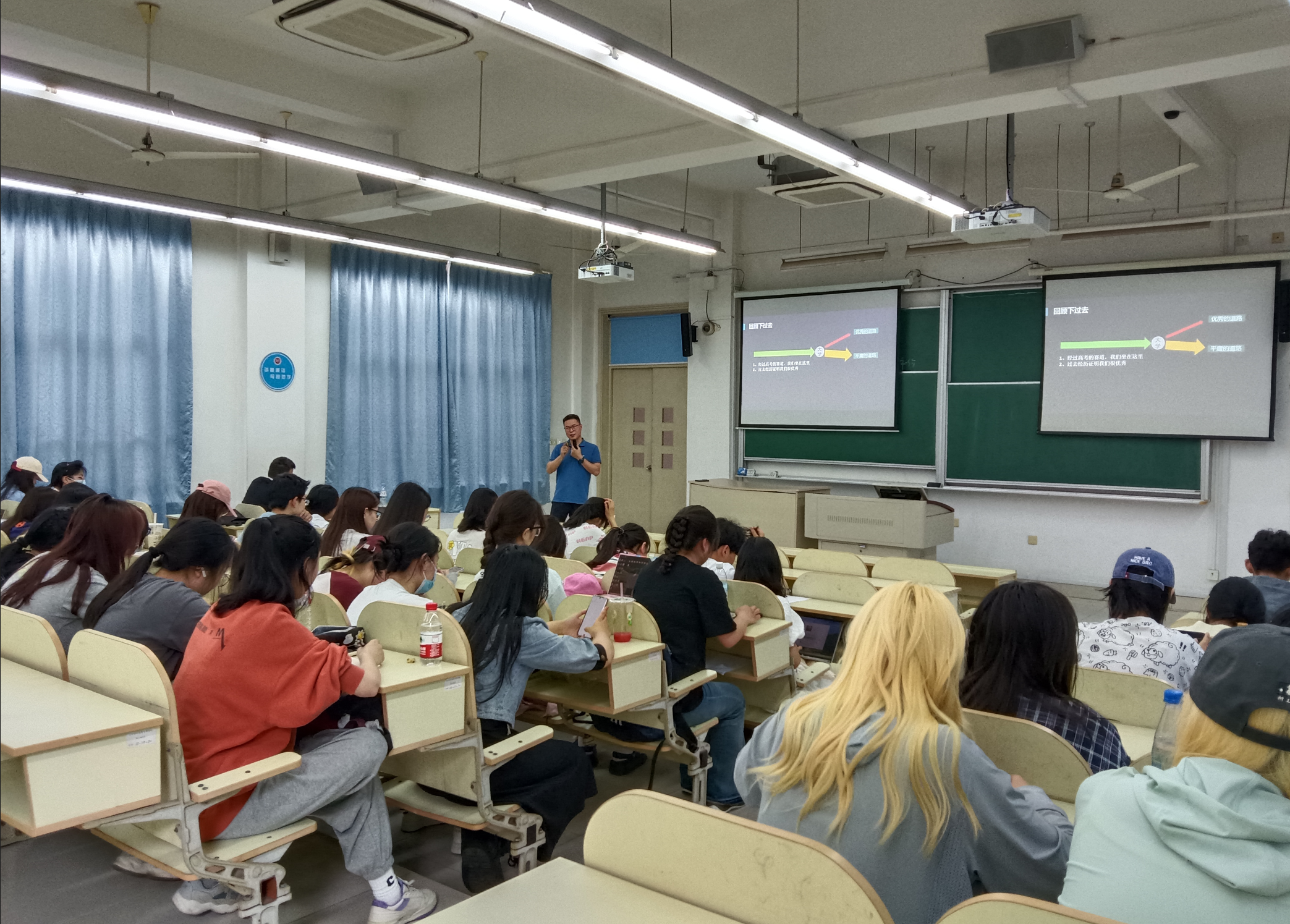 他的讲座引经据典、内容丰富、通俗生动、振奋人心、精彩纷呈,学生听的津津有味,在互动交流环节,更是反响强烈。