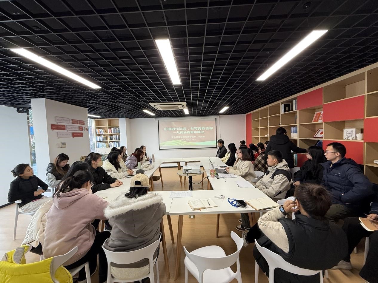 为深入学习贯彻全国两会精神,引导青年学生将个人理想融入国家发展大局,学生第二党支部于3月18日在学生园区乐中心组织了“把握时代机遇,书写青春答卷”主题党日活动,以两会就业议题作为切入点,旨在引导学生党员关注和思考当前的就业形势。支部全体党员参加,会议由支部书记王敏主持。