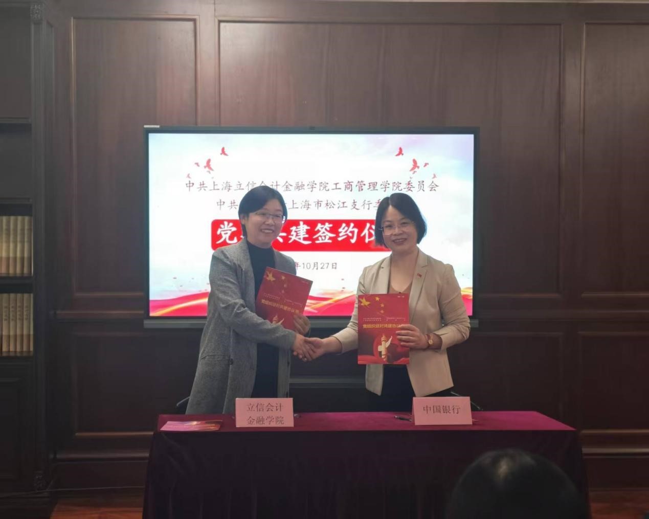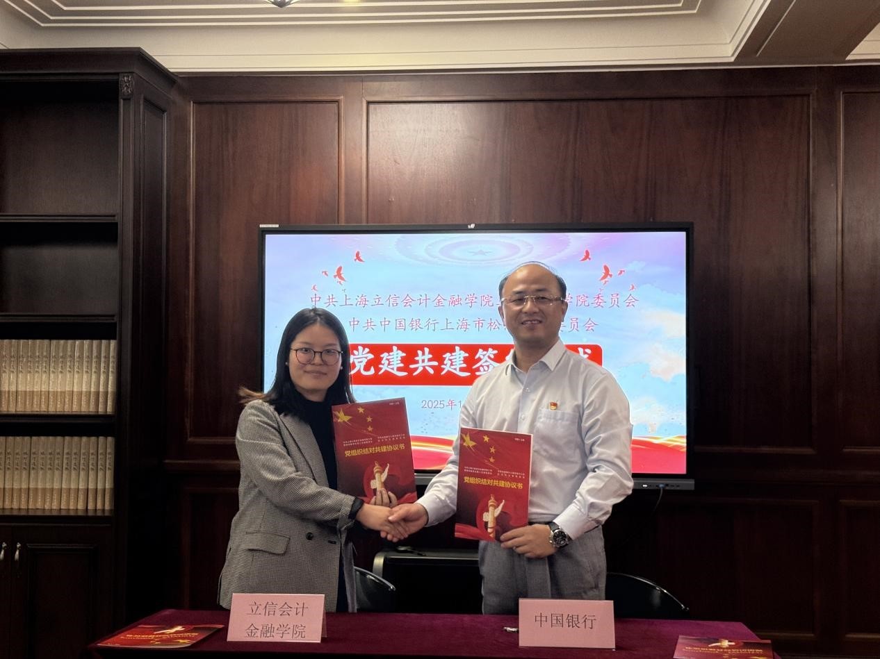 2025年10月27日,学院党委与中国银行松江支行成功举行联学共建活动暨合作签约仪式。学院党委书记王铂、副书记副院长李伟、教师及学生党员代表,中国银行松江支行党委书记施利英、高级经理陈凯等共同出席活动。