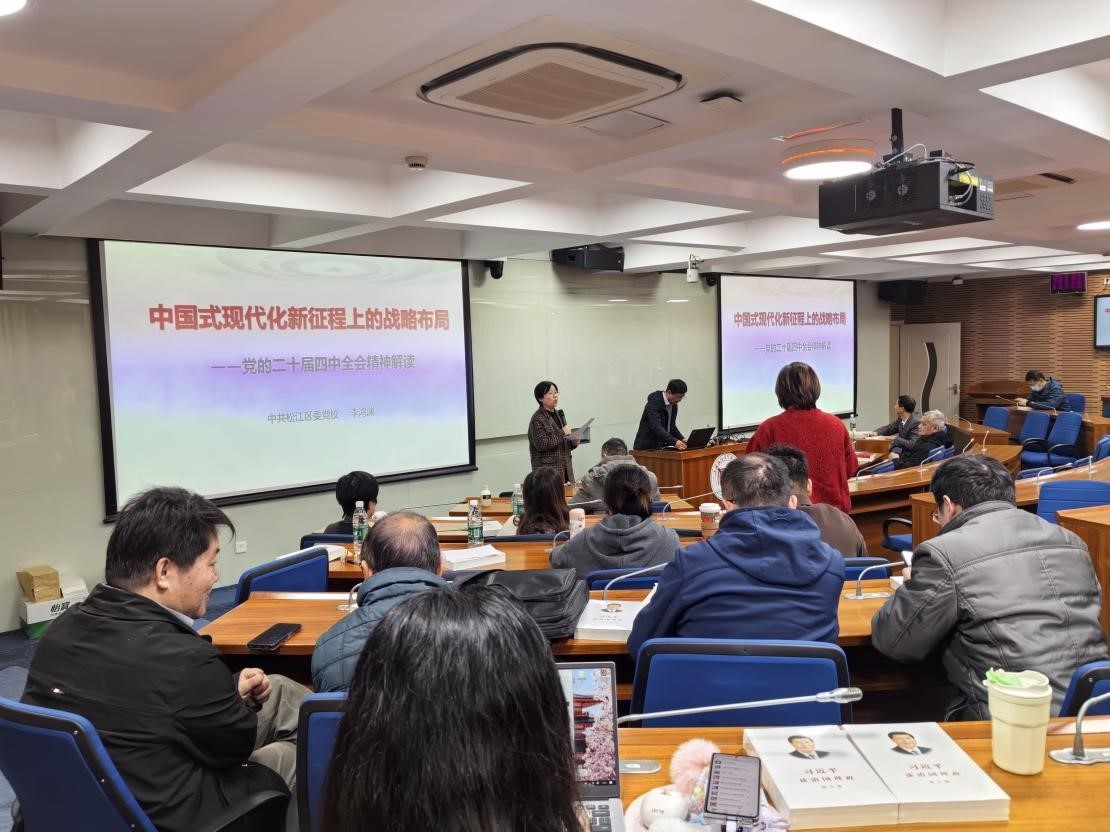 为深入学习贯彻党的二十届四中全会精神,准确把握中国式现代化新征程的战略布局,11月26日下午,工学院党委在文翔路校区序伦楼5012多功能厅组织开展专题辅导报告。学院领导班子成员及全体教师齐聚一堂,共同聆听由中共上海市松江区委党校科研室主任、副教授李鸿渊同志主讲的“中国式现代化新征程上的战略布局——党的二十届四中全会精神解读”专题授课。