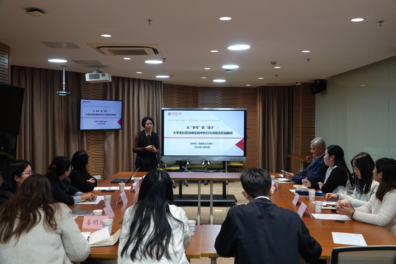 会议在四场精彩的主题分享中拉开序幕。来自华东师范大学马克思主义学院的叶林娟老师以《从“参与”到“设计”:大学生社区创课实践中的行为洞察及机制解析》为题,分享了如何引导学生从活动的被动参与者转变为主动设计者,深入剖析了行为背后的动力机制,为实践育人提供了新的理论视角。