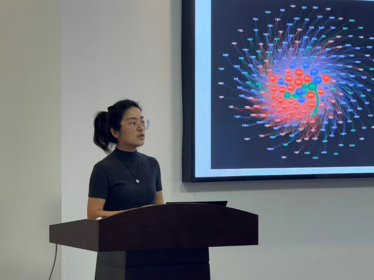 尹潇潇的报告题为“The Trade Dependency Network Reconstruction Based on Panel Regression Model: Taking Semiconductor Products as an Example(基于面板回归模型的贸易依赖性网络重构——以半导体为例)”。主要围绕贸易依赖性网络模型的构建、参数估计和显著性检验方法展开,并且以半导体为例,重构了对经济增长有实质影响的贸易依赖性网络,识别出依赖半导体进出口贸易的经济体,并进一步比较分析半导体国际贸易网络与重构的半导体贸易依赖性网络的差异。研究结果为我国经济高质量发展提供有益的政策建议,同时也为网络重构和国际经贸相关研究提供了新思路。